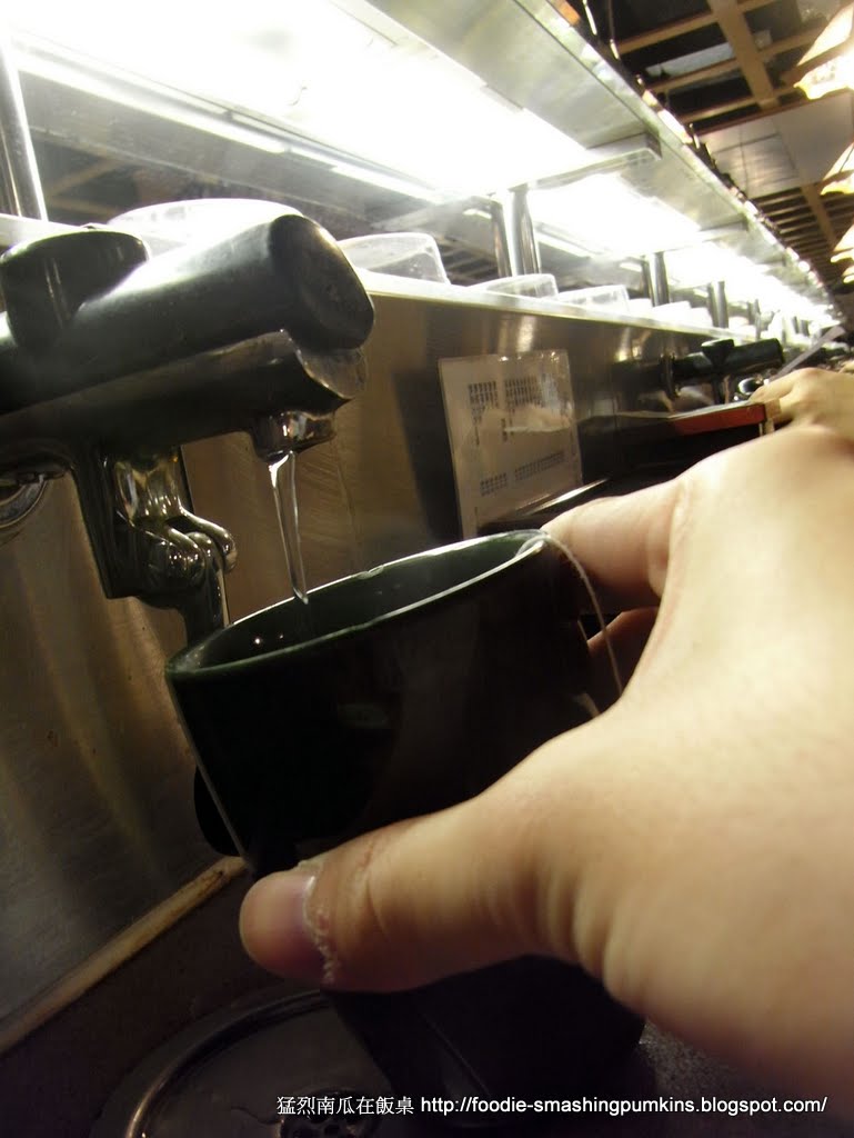 坐下不久,店方便奉上芥辣,茶包。曾經在網上看見此店的芥辣相片,水汪汪如正在溶解的綠茶雪糕,今次是一小碟上,整到好像一件綠茶餅仔。將茶包放在杯內,再放在水龍頭注水,水流弱過小便,忽然想著"弱水三千"其中一段:(三千春江水 暫住寂寞天空)友人尚未到,面前的迴轉帶,就是我的寂寞天空。